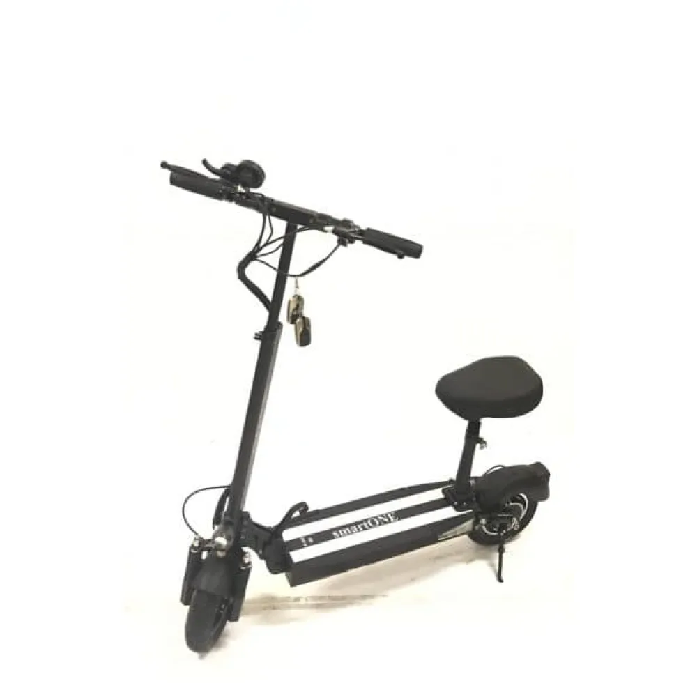 Электросамокат SmartOne MS-1 PRO мощный заднеприводный транспорт, который поможет каждый день преодолевать приличные расстояния. Его складная конструкция дает возможность в сложенном состоянии транспортировать его или убрать на хранение на зимнее время. Как дополнение, предусмотрено сидение. С комфортом совершать дальние прогулки вам будет на много проще. Руль регулируется под рост пользователя или под положение сидя.