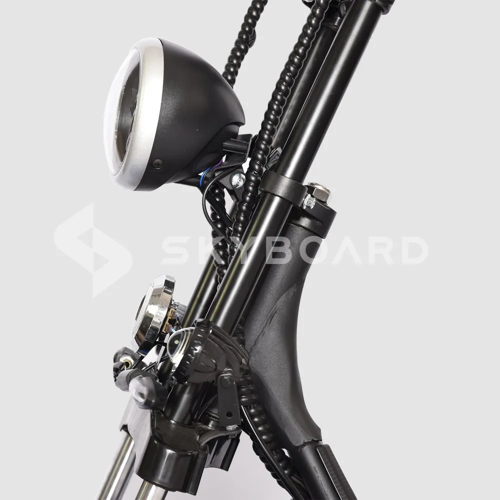 Главная особенность данной модели – наличие сразу двух электромоторов, которые располагаются непосредственно в колесах электроскутера. Мощность каждого электромотора составляет 1500W. В совокупности с мощной батареей это дает высокую мощность и длительность поездок.