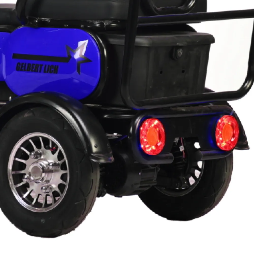 Электротрицикл Rutrike Gelbert Lich 48V/60V 600Вт – это современное средство передвижения, созданное для комфортных поездок по городу и за его пределами. Разработанный брендом Gelbert, этот электрический транспорт привлекает внимание своим стильным синим цветом и продуманной конструкцией, которая сочетает компактные габариты с надежной функциональностью.Двигатель мощностью 600 W, работающий при напряжении 48/60 V, обеспечивает плавное и стабильное ускорение, позволяя без труда преодолевать городские маршруты и небольшие подъемы. Несмотря на вес в 120 кг, электротрицикл демонстрирует высокую устойчивость благодаря оптимально подобранным 8‐дюймовым колесам, обеспечивающим хорошее сцепление с дорогой.Компактные размеры в собранном состоянии (178×76×103 см) делают этот трицикл маневренным даже в условиях узких улиц и оживленного трафика. Классическая барабанная тормозная система разработана для надежного и своевременного замедления, что повышает уровень безопасности при движении.Электротрицикл Rutrike Gelbert Lich не только функционален, но и эстетически привлекателен – синий оттенок корпуса подчеркивает его современный дизайн, а тщательно продуманные линии делают модель заметной и стильной. Это устройство идеально подходит для тех, кто ищет экологичное и экономичное транспортное средство для повседневных поездок, не теряя при этом в качестве и комфорте.Выбирая Rutrike Gelbert Lich, вы получаете надежное транспортное средство, способное сочетать динамичное передвижение, высокую маневренность и продуманную систему безопасности, что делает каждую поездку не только удобной, но и безопасной.