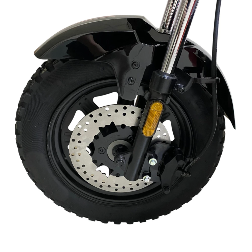 • Мощность 1000 Вт обеспечивает уверенный набор скорости до 50–55 км/ч (в зависимости от настроек и режимов) и позволяет ездить без перегрузки на склонах и при полной нагрузке (водитель + груз в кофре).