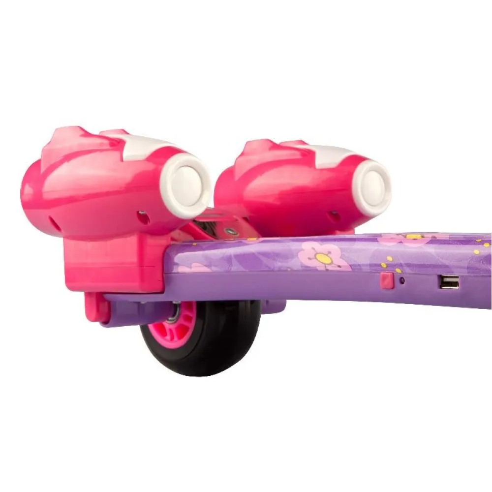 Главная особенность самоката - две турбины, расположенные в задней части деки, - они создают эффект вырывающегося пламени и дыма, как будто вы управляете космическим кораблем! Важно отметить, что такой эффект совершенно безопасен и не принесет вреда окружающим или самому ребенку. Дело заключается в паре, который образовывается из залитой внутрь жидкости, а за счет подсветки зрительно кажется, что он идет от «огня».